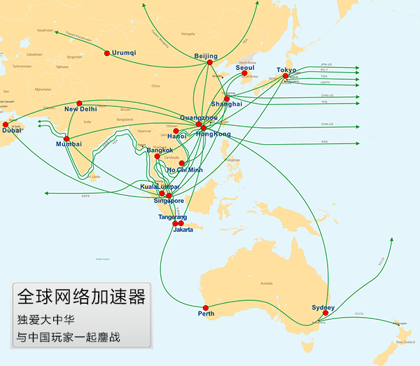 国外玩家玩国内游戏的时候,不论网络数据怎样加速传输,最终都要从大陆的某个国际出口进入中国的网络。我们去掉了中间环节,直接给用户提供大陆国际出口的优化段IP,能达到更好的性能。
