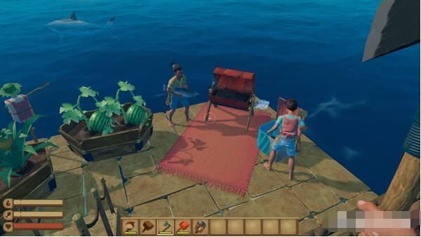 Raft在Steam上还是多半好评(77%好评率),成绩算是不错的。首先作为一个生存类游戏,raft把背景放到一望无际的大海上,这种创新确实能让玩家们眼前一亮。玩家们需要通过收集海上漂流的垃圾来升级建造自己的木筏,或者潜入深海、探索无人岛获取资源,也可以钓鱼、做陷阱等等,不仅要填饱肚子,也需要时刻应对暴风雨和残暴的鲨鱼等敌人。