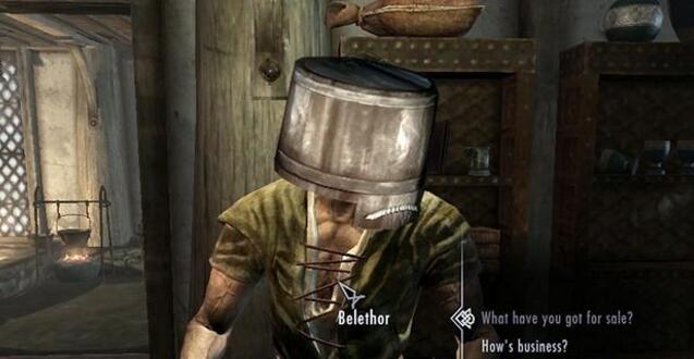 游戏中的NPC是有视野设定的,把木桶等道具套到NPC头上就能挡住他的视线,然后就可以明目张胆的偷东西了。不过据说在当前版本中这个”BUG“已经失效(我没有实测过)。
