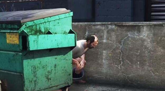 严格说这个应该算不上设定,但在某个剧情点会看到崔弗躲在垃圾桶后面“放松”的情景,被麦克看见后,他一副还若无其事的样子。最可怕的是,他好像没有擦就站起来了……