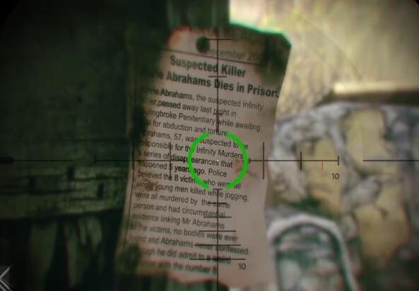 看到这,就能得知山顶的女鬼其实就是“JOCK”的妻子,而她脚下用血写的字迹无疑再向玩家哭诉杀死自己的凶手其实就是她的丈夫JOCK。那她的丈夫究竟是什么人?为什么要杀死自己的妻子呢?我们往下看,就能找到有关JOCK的更多线索。