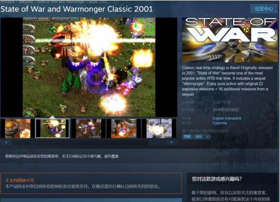 《蓝色警戒(State of War)》是2001年上线的一款经堤郥S作品,虽然直译名应该是《全面备战》,但是当年为了蹭红警热度,发行商故意取了这个名字,目前该作的合集版《蓝色警戒经典合集》在Steam平台上架了,这一版本收录了《蓝色警戒》1和2中的38个任务,并未加入新任务。
