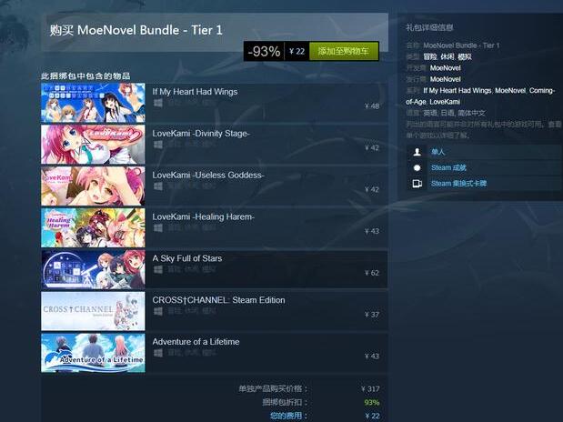 目前steam平台惊现临时工,视觉小说游戏捆绑包MOENOVEL BUNDLE目前白菜价