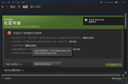 Steam社区市场交易功能受限