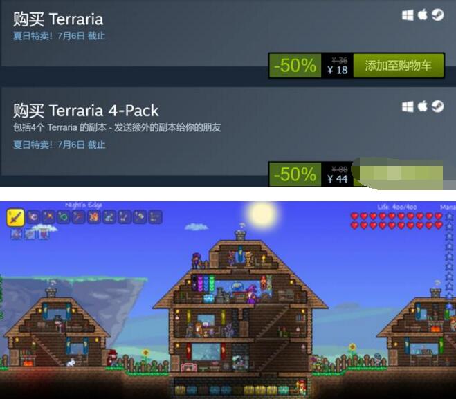 泰拉瑞亚可以说是已经被封神的作品,也是人们经常推荐的游戏,但还是再推荐一次吧,毕竟太值得新手玩家一试了。Steam版2D我的世界,创造力、想象力,创造心中的梦中城堡,孤单时的绝佳选择。但还是推荐有小伙伴的玩家们直接入手四人包,既便宜,又更具有乐趣,游戏本就是一起分享欢乐!