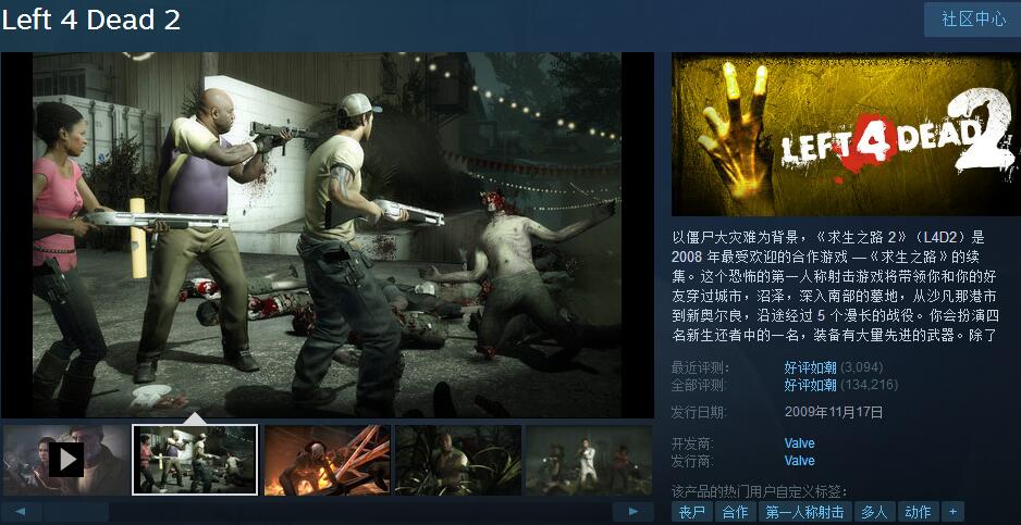 《求生之路2》虽然不是什么太新的游戏,但是在合作打僵尸领域绝对是一个合作经典。游戏在合作玩法上十分突出团队间的默契,并且该游戏经常在各类促销中打出低于10元的低价,是真正的物有所值作品。