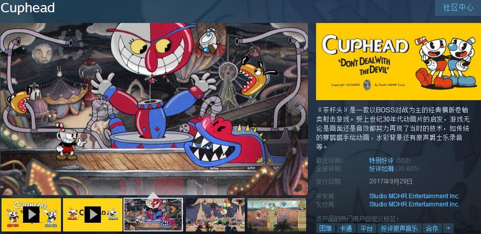 Cuphead游戏预售时曝光的视频就深深吸引了我,拥有30年代复古卡通风格的画风,经典的爵士风配乐,在当时发售不到24小时 已在Steam上收获好评如潮,虽然游戏难度略高,毕竟这是一款以BOSS对战为主的经典横版卷轴类射击游戏。玩联机游戏就用Steam加速器,降低延迟靠谱!