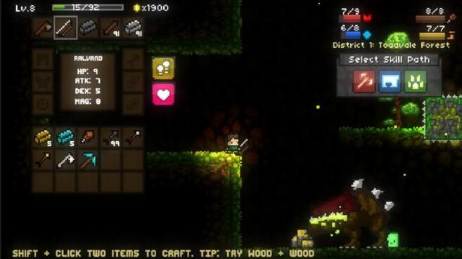 游戏很出色,比较硬核(需要一定操作,对新手不友好),像MC一样有很多合成元素和装备系统,每关地图随机生成,永久死亡,可联机。死后游戏得分可以解锁新的人物装备。