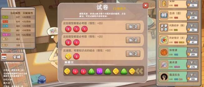 不仅如此,游戏中还有一些特别的选项,不同的选项会影响到不同样的结果,但唯一可见的就是日程上的安排要么就是学习,要么就是放放松,来来回回都是这样的选项。由幼儿园毕业升上小学那些作业题更为有趣了,作业题的选项一般都有几个,正确选择这些都会影响到往后考试的目的,然而家长们对孩子的期望也更多了,该应付的东西一切都有此增加了。