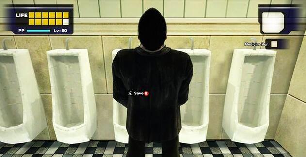 这是一个很有幽默感的游戏,本作中上厕所并不只是一个彩蛋,而是必要操作,因为存档点就在厕所里。不得不说这个设定的确够新奇。