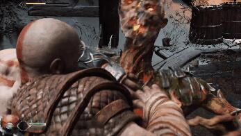 本作中,用拳头把敌人的昏迷槽打满,就可以施展处决技了。和前代中的QTE很类似,只不过简化成了单一按键触发。不同的敌人就有不同的处决技。其中我印象最深的是初始小怪的“手撕鸡”:刚开始玩战神4的时候觉得奎爷老了,以一挡千的气势不再了。突然来个徒手撕鸡,热血的感觉一下子就回来了。