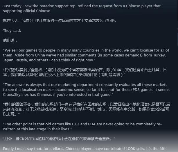 相信随着我们国人受教育程度的提高,通用英语已经不成问题了,游戏中的英文可能不会影响游戏体验,但是作为第一人口大国的玩家,是不能忍受被游戏厂商忽视的事实,因此在Steam平台刷差评,诉求厂商推出简体中文的行为,体现了我们游戏玩家对于被尊重的要求。